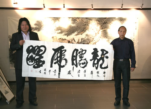 牛迈程先生惜洒的两幅墨宝,蕴含了他对国酒书画院龙腾虎跃于辉煌的美好祝愿,并祝愿公司生意兴隆,昌盛永久。