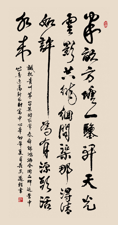 法取兰亭存气韵,书随时代见精神。牛老师说,在民族复兴的伟大时代,书法创作一定要体现豪迈、大气的时代精神。书法创作一定要饱含激情,书法创作实际上就是抒情,是书家胸怀、抱负、气魄的集中展示,是爆发、是奔腾、是书家从笔端流淌出的精气神。 谈到自己书法创作的心路历程,牛老师说,书法作品就像一幅情感的"心电图",以线条的形式直接记录了书家内心深处最真实的情感波动,并以视觉的方式直观地呈现出来,因此具有高度的"写心"性,实际上是"写心的艺术"。只有饱含深情,用心创作的作品才能感动人、鼓舞人、震撼人。