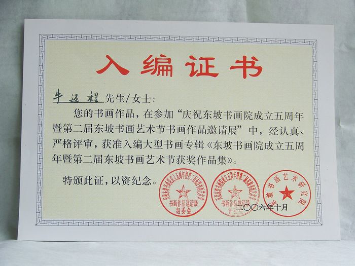 牛迈程作品入编2012水仙杯