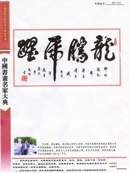 牛迈程书法作品在喜迎十八大大型书画展中被评为金奖,并在钓鱼台国宾馆展出