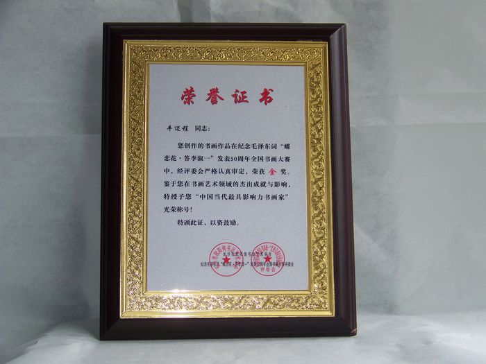 荣获世界华人书画大赛金奖