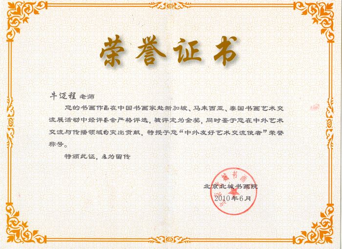 牛迈程入聘北京瀚墨大家书画院名誉院长