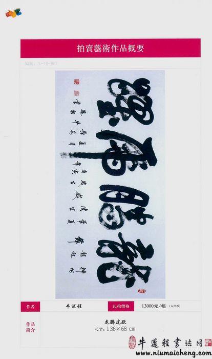 2012年12月,书法作品“龙腾虎跃”由上海青莲阁拍卖公司拍卖成交