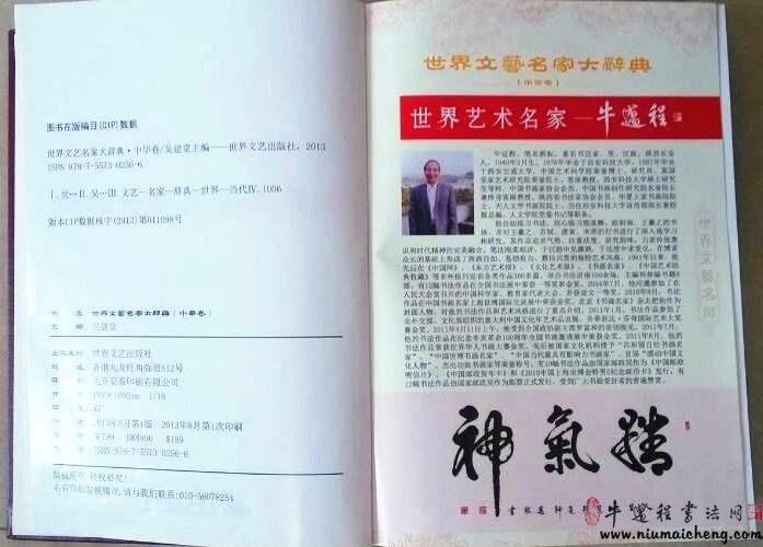 2013年8月,书法作品被收入《世界文艺名家大辞典》